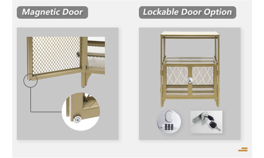 We manufacture the cabinet with wide metal cabinet top and metal mesh top. The wide cabinet top is perfect platform for exhibits. Moreover, the metal mesh shelf facilitates convenient storage for plenty of items to well suit different requirements. 2 mesh doors allow for good ventilation yet offer the functionality of masking sundries while also adding that sought-after element of openness – a trio of functions!